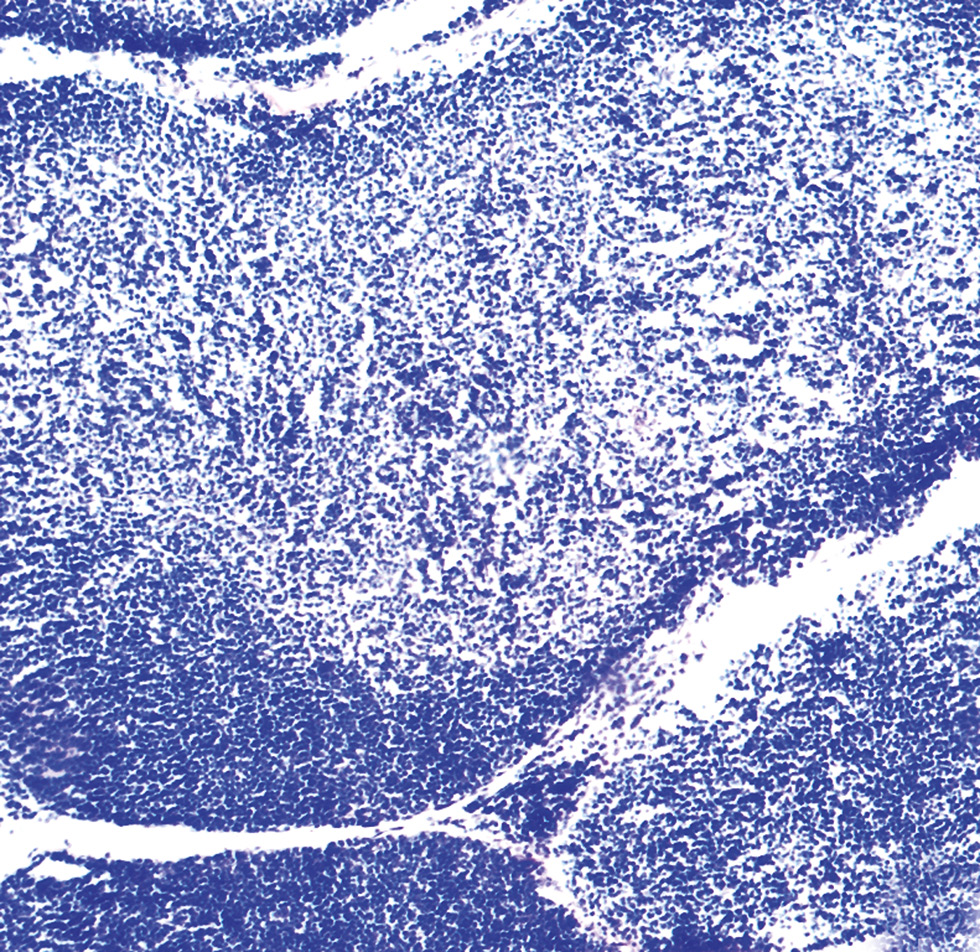 Для гистологического исследования взяты отсепарированные скакательные суставы с максимальным сохранением топографии. Декальцинацию кусочков проводили в 25% растворе Трилона Б с добавлением 40% раствора NaOH в течение 1 мес. В дальнейшем объекты подвергали дегидратизации в спиртах возрастающей концентрации и заливали в целлоидин-парафин. Срезы толщиной 5–6 мкм, изготовленные на ротационном микротоме МПС-2 («Точмедприбор», Украина), после депарафинирования окрашивали гематоксилином Майера и эозином, а также по Граму — для дифференциации бактерий.