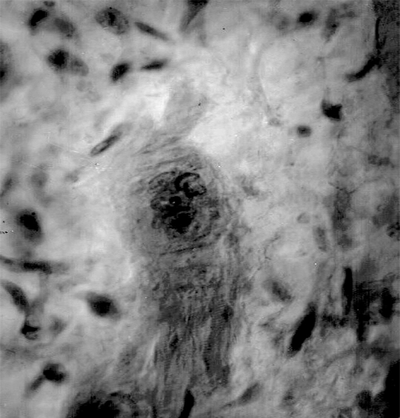После выведения животных из эксперимента головной мозг, сердце, печень извлекали полностью, фиксировали в 10% нейтральном формалине и заливали в парафин. Серийные срезы окрашивали гематоксилином и эозином, по Ван-Гизону; срезы головного мозга дополнительно окрашивали по Нисслю.