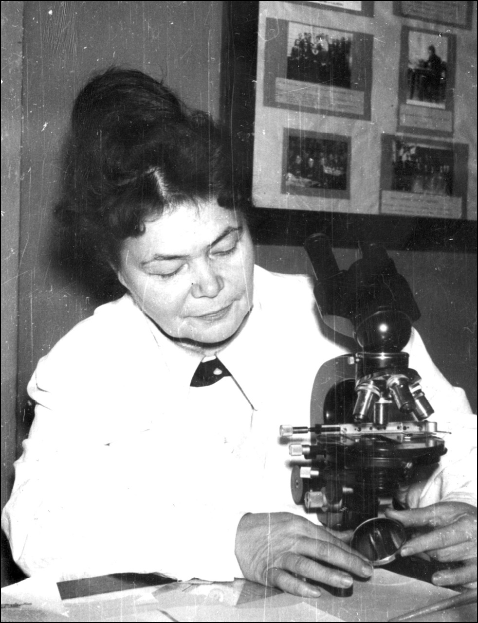 Fig. 1. Professor Iraida Pestova at work. Photograph from the archives of the Department of Histology, Perm State Medical Institute.