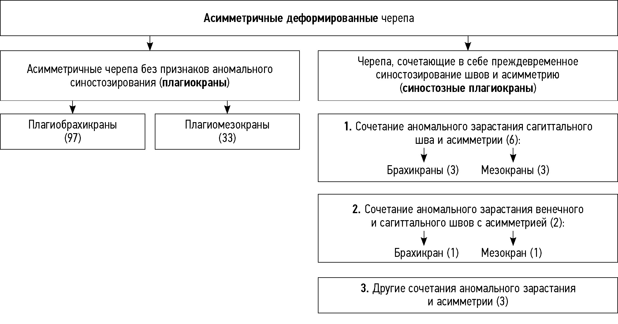Черепа с сочетанием краниосиностозов и асимметрии | 11 |