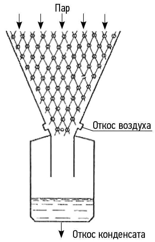 Экспериментальные исследования существующих конструкций трубных пучков показали: по глубине пучка по ходу пара тепловые нагрузки уменьшаются в 5–8 раз, что объясняется снижением скорости пара из-за непропорционального уменьшения проходного сечения по пару по отношению к изменению расхода пара.