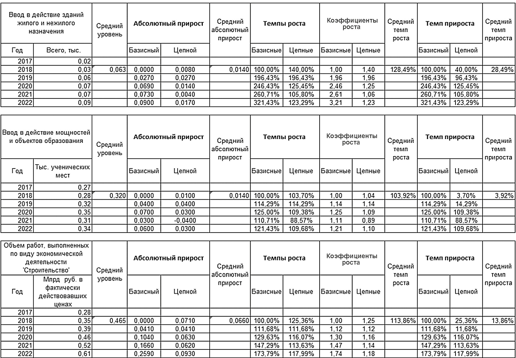 Обоснование. Согласно государственной стратегии развития инфраструктуры регионов, актуальным является развитие жилого и нежилого фонда как составляющей общей строительной сферы. Научная новизна данной исследовательской работы заключается в применении математического инструментария, динамического анализа с целью изучения и прогнозирования ключевых строительных показателей. Рассчитанные значения способствуют развитию Самарского региона и компании ООО «ГРАД-ИНВЕСТ».