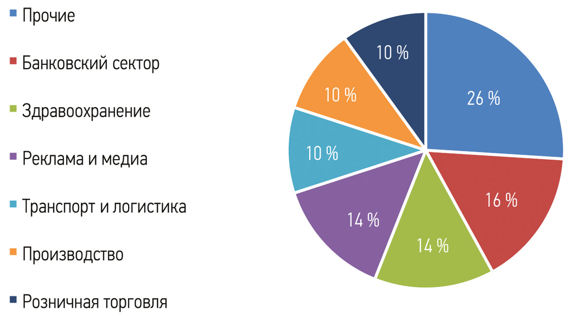 Рис. 2. Доли отраслей с наибольшим потенциалом внедрения ИИ