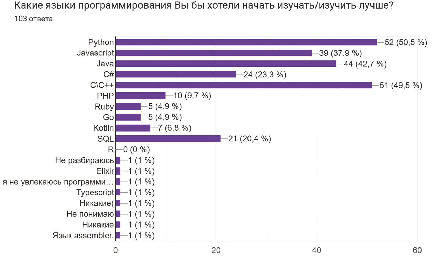Рис. 1. Диаграмма: «Изучение языков программирования»